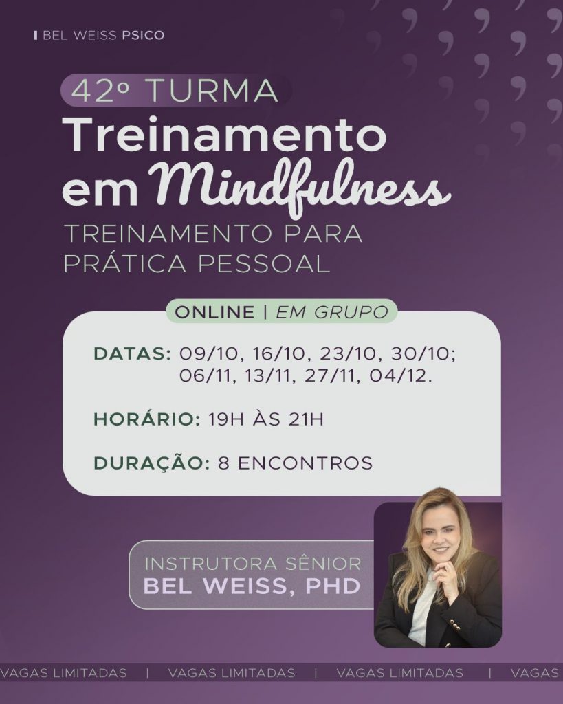 Foi uma experiência maravilhosa. Não tive dúvidas que teria muito aprendizado, mas a cada encontro online, superaram as minhas expectativas. Foi uma troca incrível, a oportunidade de conhecer, aprender e experimentar Mindfulness. Sou grata por ter participado desse treinamento, obrigada Isabel que com tanta gentileza ajudou, acolheu e ensinou.”